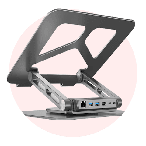 UNITEK Foldable Laptop Stand with 7-in-1 Docking Station Aluminum USB-C Stand for MacBook, Laptop, Tablet