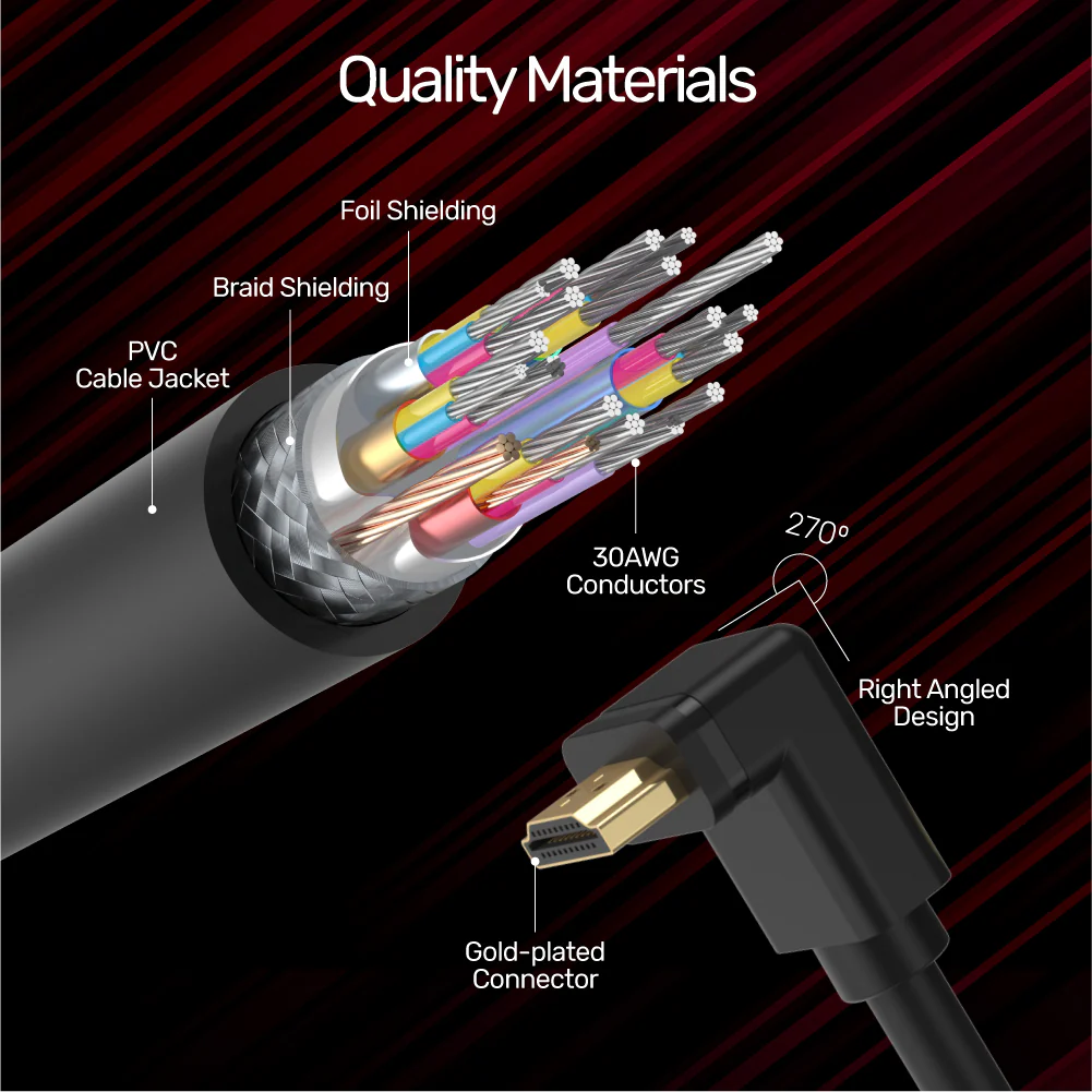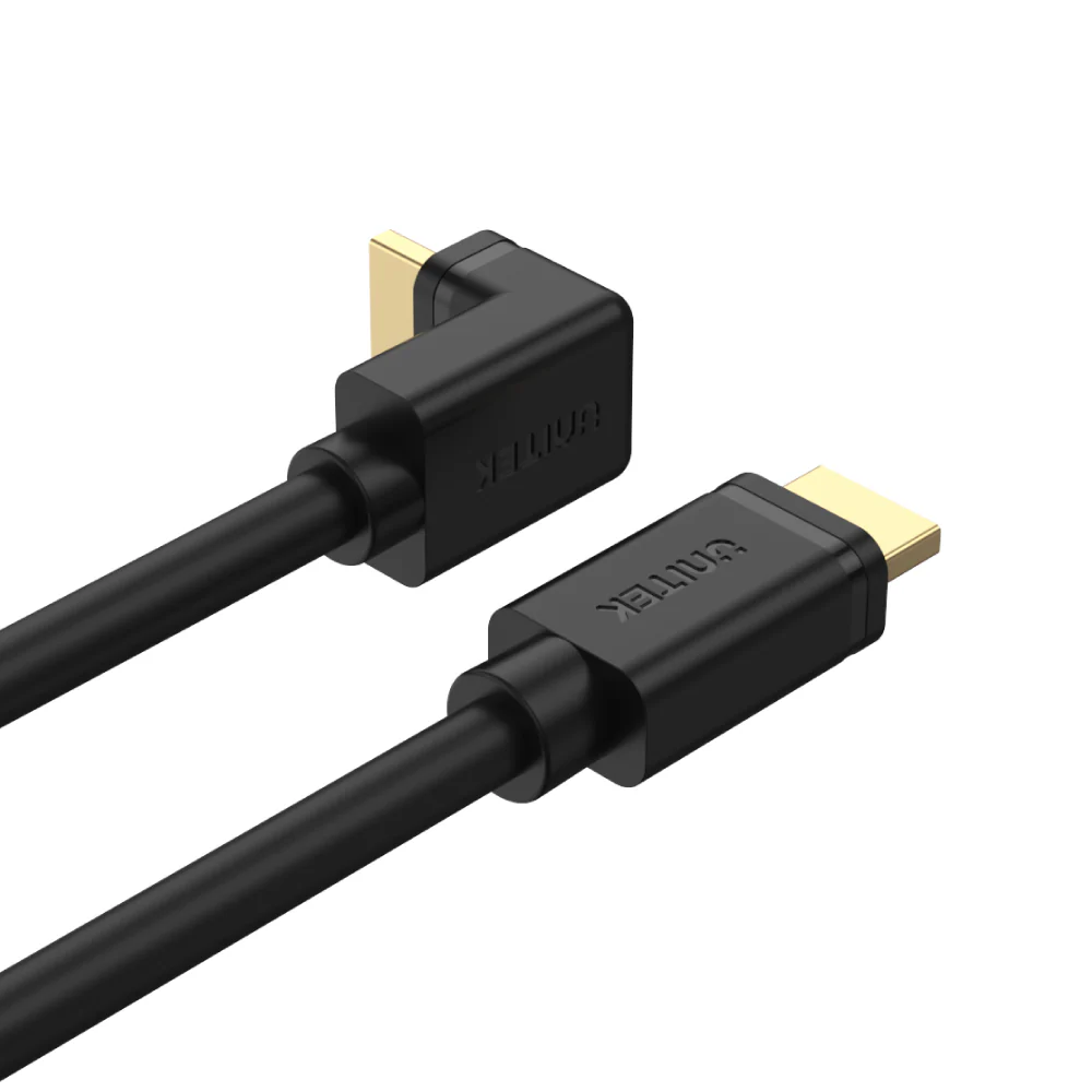 The 270° right angle design makes this cable ideal for wall-mounted devices, solving space constraints and providing a clean, organized setup. Crafted with gold-plated connectors, 30AWG tinned copper conductors, and triple shielding, the UNITEK HDMI cable ensures superior durability, conductivity, and protection against electromagnetic interference.