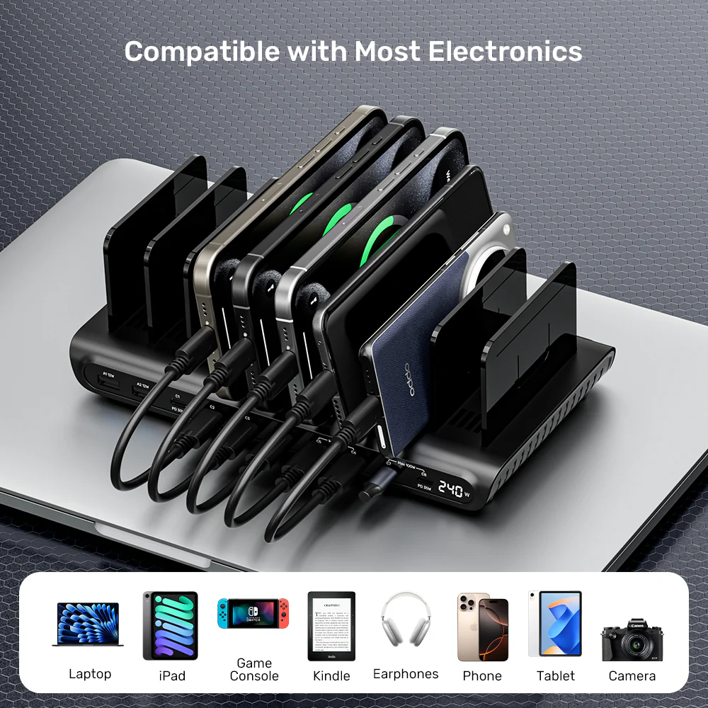 Eliminate cable chaos and charge your entire family’s or team’s devices in one centralized, ultra-efficient spot. The UNITEK uCharge 240W 10-Port Smart Charging Station is the ultimate organizational and power solution for homes, offices, cafés, and schools. It combines high-power delivery, intelligent management, and a sleek design to keep all your gear powered and orderly.