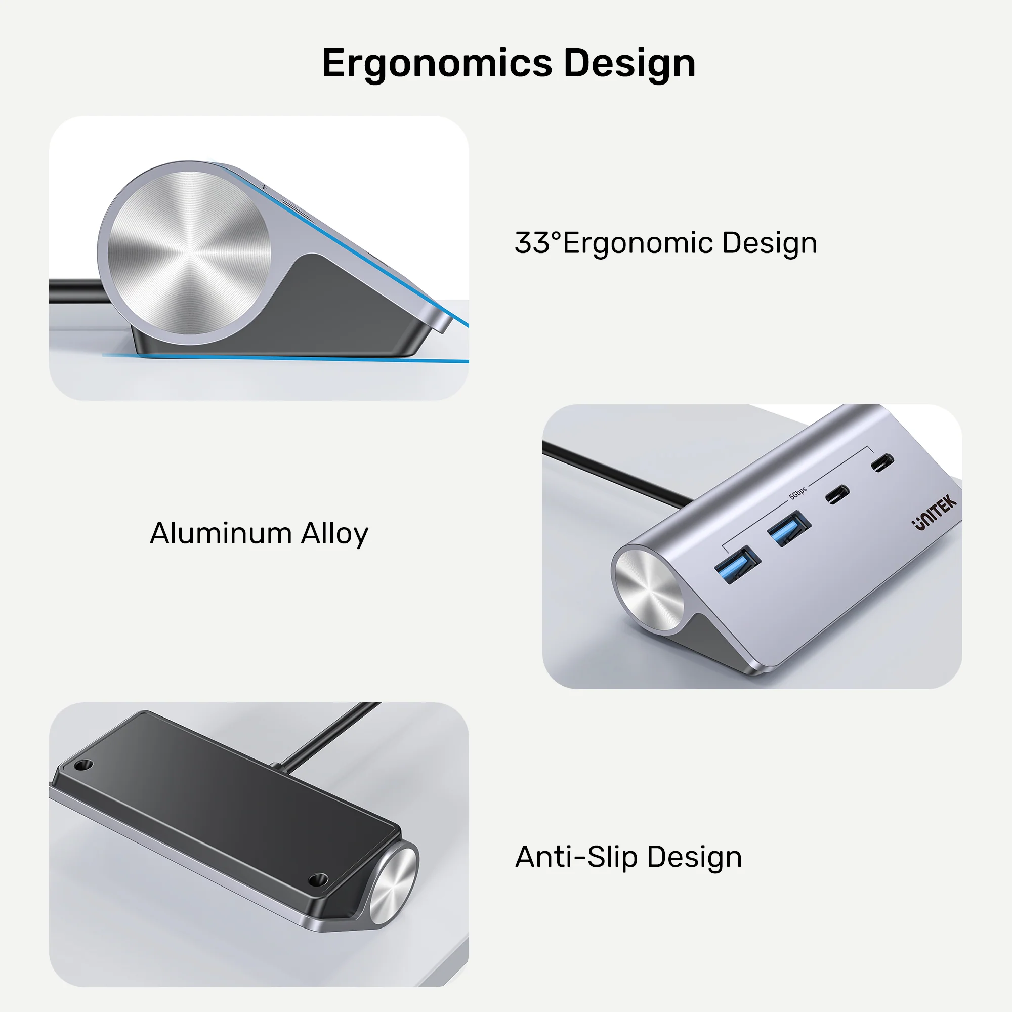 UNITEK H1337AGY01 uHUB Q4 4-in-1 USB-C Hub – 5Gbps Dual USB-A & USB-C Ports | External Power Supported | 33° Ergonomic Design | Space Grey